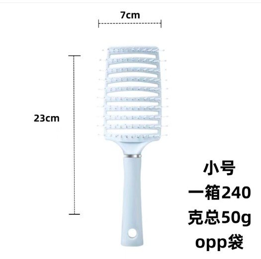 Note : Vented Design: Allows airflow for faster blow-drying. Curved/Flexible Bristles: Designed for detangling and scalp massage. Ergonomic Size: Approximately 23 cm, long and 7cm wide. Lightweight: Total weight is 50 gm